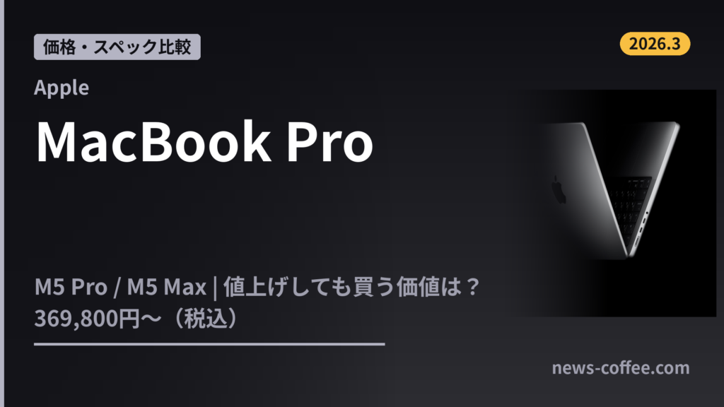 2026年3月発売のMacBook Pro M5 Pro/M5 Maxの税込価格・スペックをApple公式データをもとに徹底比較。M4世代からの性能向上幅、最大9.5万円の値上げの背景、M5 ProとM5 Maxの選び方まで解説。
