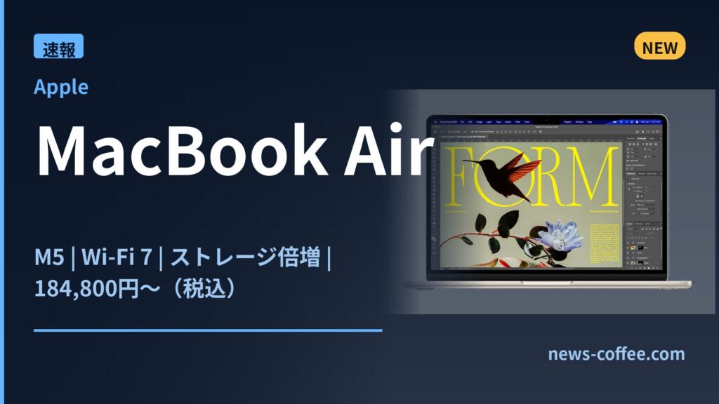 Apple MacBook Air(M5)発表!Wi-Fi 7・ストレージ倍増で184,800円から【2026年3月】