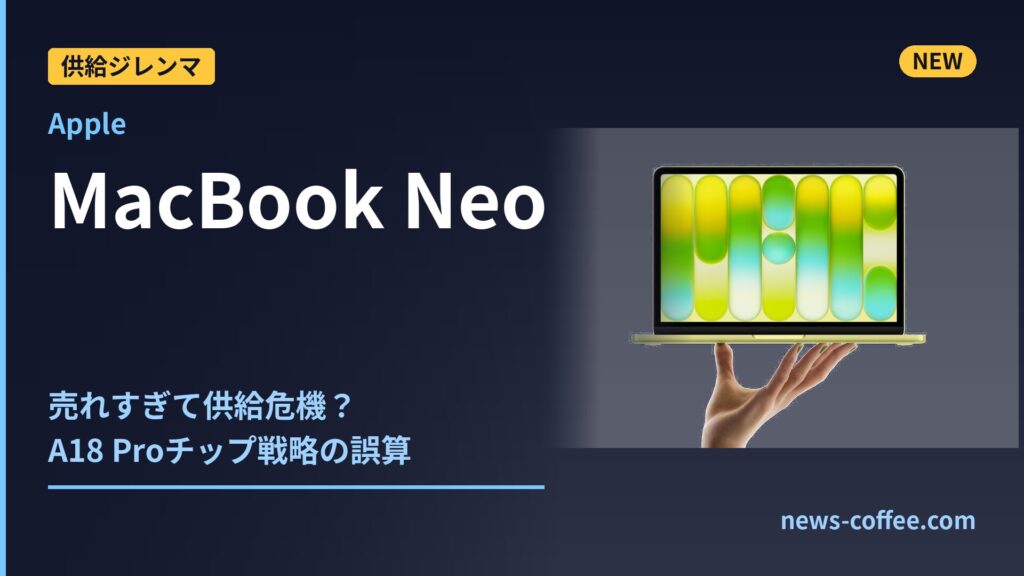 2026年3月発売のMacBook Neoが予想外の大ヒットを記録し、Appleがチップ供給に関する深刻なジレンマに直面していることが明らかになった。iPhone 16 Proの製造工程で生じたビニングチップの活用戦略が裏目に出た内幕を解説する。